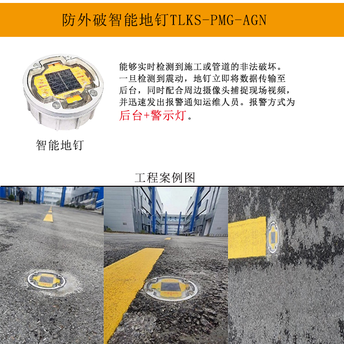 在現(xiàn)代都市中,地下基礎(chǔ)設(shè)施如同城市的隱形血脈,支撐著城市的正常運轉(zhuǎn)。然而,施工破壞、非法挖掘等潛在威脅時刻威脅著這些“生命線”的安全。傳統(tǒng)的監(jiān)測手段往往滯后,難以提供及時有效的預(yù)警。為此,我們創(chuàng)新推出了TLKS-PMG-AGN電纜防外破地釘,這款專為城市地下基礎(chǔ)設(shè)施設(shè)計的智能監(jiān)測裝置,以先進的預(yù)警機制和高精度監(jiān)測技術(shù),為城市地下安全筑起了一道堅實的防線。