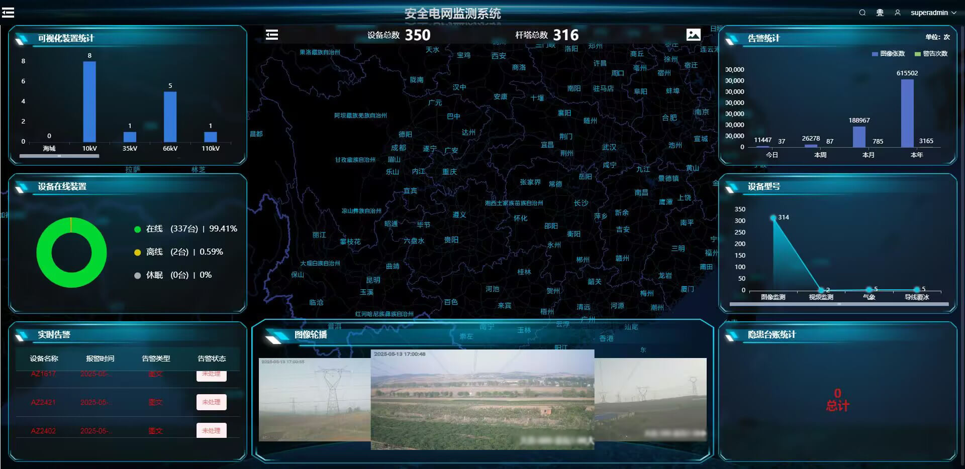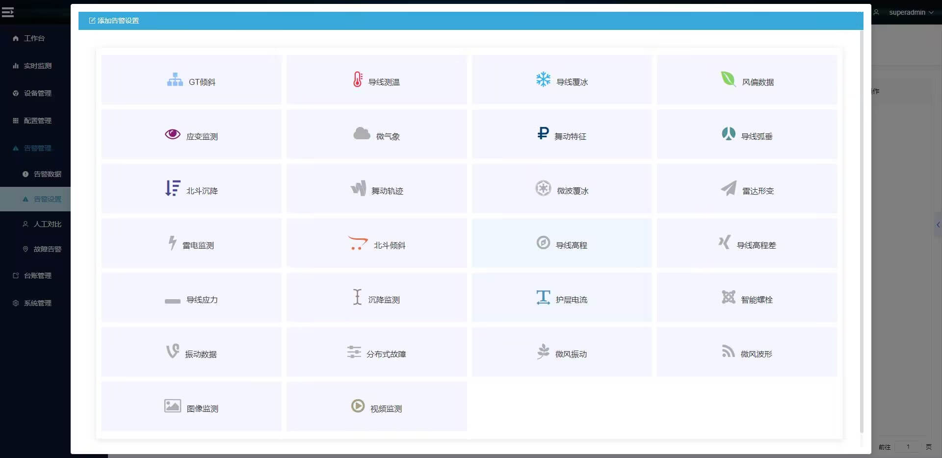 安全電網(wǎng)監(jiān)測(cè)系統(tǒng)軟件平臺(tái)TLKS-PMS主要由監(jiān)控平臺(tái)、設(shè)備通訊處理服務(wù)及各類子監(jiān)控巡視系統(tǒng)組成。整個(gè)系統(tǒng)以監(jiān)控平臺(tái)為核心,完成對(duì)各類子系統(tǒng)的整合,集中實(shí)現(xiàn)監(jiān)控?cái)?shù)據(jù)處理、實(shí)時(shí)巡視、數(shù)據(jù)分析、數(shù)據(jù)推送等功能,并完成與其他系統(tǒng)的鏈接通信。實(shí)現(xiàn)對(duì)輸電線路現(xiàn)場(chǎng)視頻、施工環(huán)境、覆冰、氣象、振動(dòng)、形變監(jiān)測(cè)等各種重要信息的集中收集、處理、巡視、預(yù)警等功能。