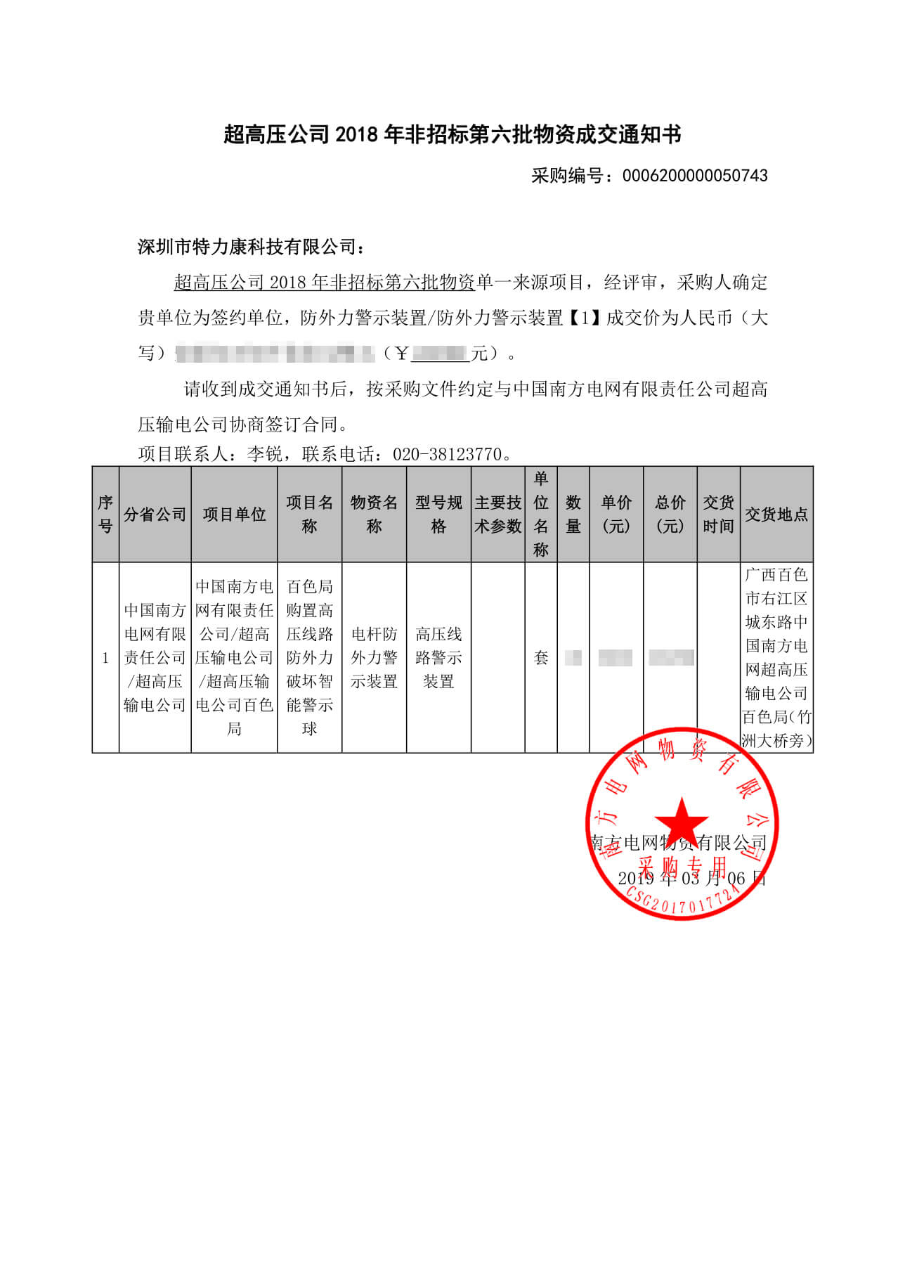 特力康中標(biāo)國網(wǎng)黑龍江送變電工程公司的2024年度第18次物資類競爭性談判采購項目——慶陽驅(qū)鳥器物資框 特力康中標(biāo)國網(wǎng)甘肅省電力公司省管產(chǎn)業(yè)單位2024年第五次物資競爭性談判授權(quán)采購項目 中標(biāo)喜訊:深圳市特力康科技有限公司成功入圍許繼集團(tuán)綜合能源公司輸電線路視頻在線監(jiān)測裝置模塊集采項目 中標(biāo)喜訊:特力康成功中標(biāo)國網(wǎng)重慶市電力公司渝中一片區(qū)項目 特力康成功中標(biāo)國網(wǎng)天津市電力公司2024年第二次?物?資招標(biāo)項目 特力康中標(biāo)國網(wǎng)安徽省電力有限公司蕪湖供電公司2024年3月非物質(zhì)采購項目 破解采空區(qū)隱患:山西電力裝特力康通用型監(jiān)測裝置,守鐵塔穩(wěn)運(yùn)行 四川電力用特力康架空輸電線路山火監(jiān)測裝置,筑牢林區(qū)輸電 “防火墻”? 遼寧電力啟用特力康多視角監(jiān)拍裝置,全維度守護(hù)輸電安全? 破解黃土高原沉降難題:山西電力用特力康北斗裝置守桿塔安全? 山東電力啟用特力康動態(tài)版智能激光驅(qū)鳥器,動態(tài)防控守護(hù)變電站安全? 湖南超高壓電力啟用特力康球機(jī) AI 監(jiān)測裝置,智能守護(hù)輸電通道安全? 廣西電力啟用特力康高壓電纜護(hù)層環(huán)流監(jiān)控設(shè)備,筑牢電纜安全防線? 寧夏配電線路安裝了我司防外破電子化智能警示牌
